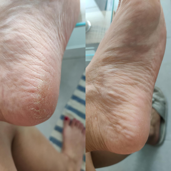 Talon fendillé ➜ Talon lisse & rose après 1 séance de 2 min
